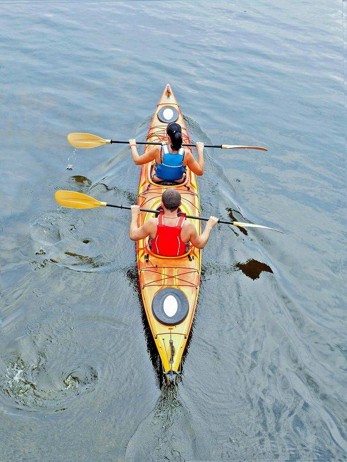 Drugorzędne znaczenie ma rozkład wagi i siły kajakarzy. Optymalnie dziób nie powinien być zanurzony bardziej niż rufa (lekkiego partnera można dociążyć bagażem), a silniejsza osoba siedzi z tył (bo to ona będzie wykonywać większość manewrów).